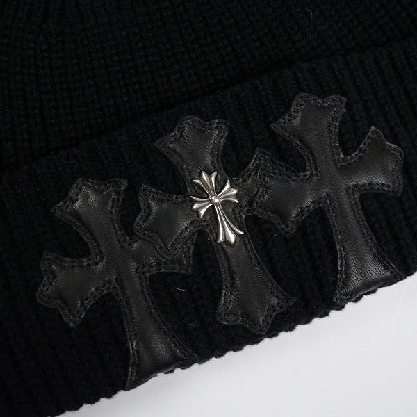 CHROME HEARTS クロム・ハーツ Cashmere Triple Leather Cross Patch With Silver Logo Cross Beanie カシミアビーニー 黒 Size 【フリー】 【新古品・未使用品】 20836630