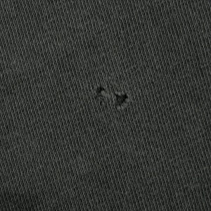 着用感があり、ボディ全体に汚れや毛羽立ちや色褪せがあります。フロント下部/右脇周辺にダメージがあります。